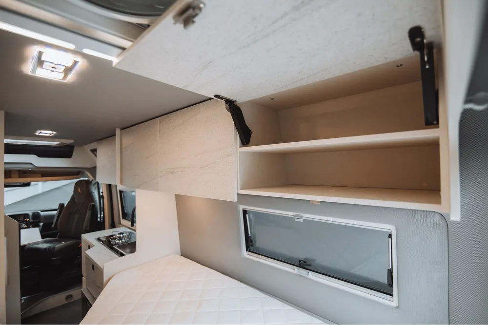 Profitieren Sie von dem größeren Stauraum, der durch die Längsbettanordnung ermöglicht wird, und dem noch größeren Platzangebot in der “For Two”-Edition mit zusätzlichem Kleiderschrank und Thekenbereich.