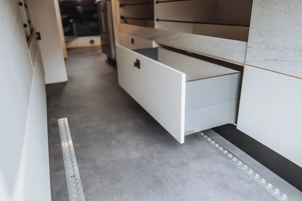 • Voll ausziehbare Schubladen in Möbelbau-Qualität