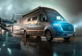 Die kühnen, dynamischen Linien an der Seite des Fahrzeugs erinnern an mystische Flügel. Die schlanke, aerodynamische Form, die durch diese flügelähnlichen Elemente entsteht, erhöht nicht nur den optischen Reiz, sondern suggeriert auch ein Gefühl von Geschwindigkeit, Freiheit und Abenteuerlust. Dieses einzigartige und auffällige Design hebt das Wohnmobil von anderen ab und verspricht unvergessliche Reisen.