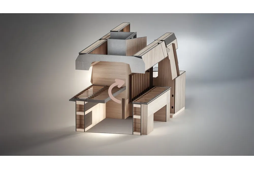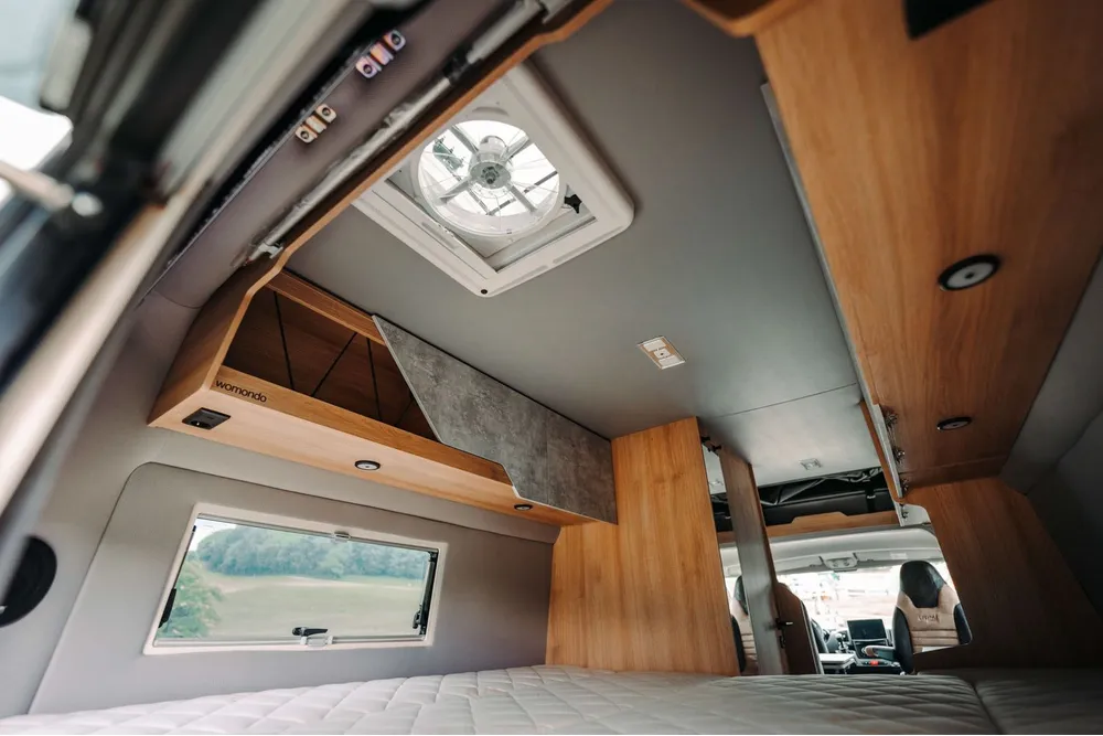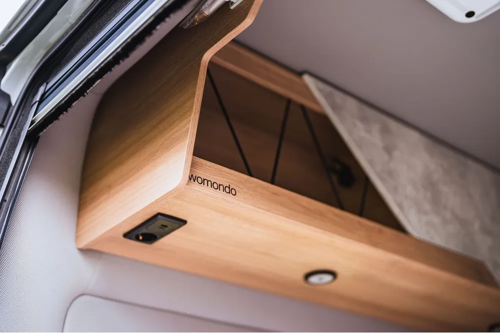 Das Innendesign des Wohnmobils kombiniert das dunkelgraue Laminat CPL U717 Dakargrau und das helle Laminat H3157 – Vicenza Oak. Dakargrau wird für Unterschränke und Bereiche verwendet, die eine hohe Strapazierfähigkeit erfordern, während Vicenza Oak für Oberschränke und Wandpaneele verwendet wird. Die Kombination schafft einen ausgewogenen, modernen und einladenden Raum, der sowohl stilvoll als auch praktisch ist.